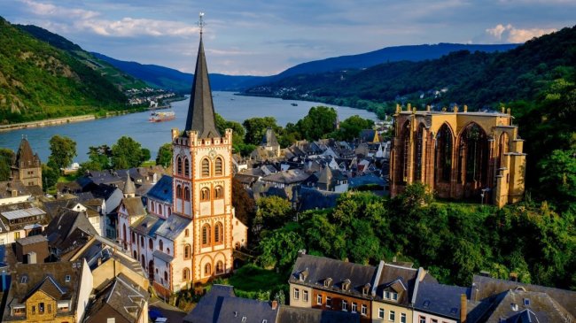 Необыкновенно красивый городок Бахарах расположен в живописной долине Рейна. Его название произошло от древнего кельтского слова "Баккаракус" - кельтское поместье Бахуса. Здесь до сих пор витает дух Средневековья: все те же фахверковые дома, украшенные сосновыми балками, старинные церкви и мощеные улочки.