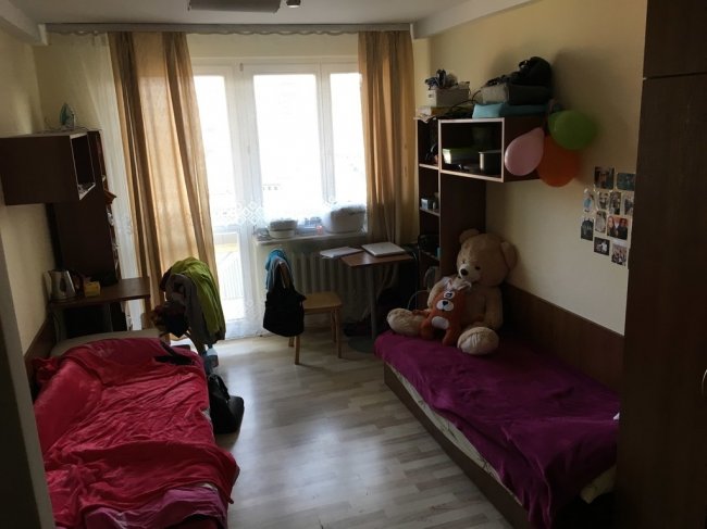 В общежитии есть лекториум, то есть комната, в которой можно тихо позаниматься; спортивный зал, сушилка и прачечная. Чтобы постирать, нужно зарегистрироваться. На сайте общежития каждое воскресение появляется расписание. Ты выбираешь удобный день и время. Стоимость проживания - 380 злотых в месяц.