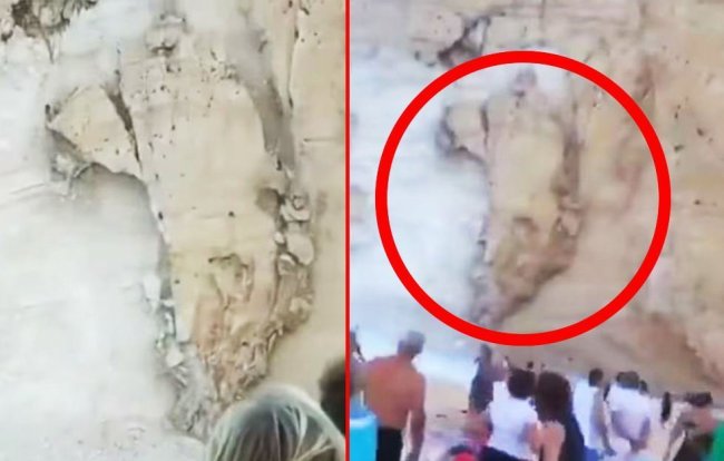 Видео, снятое очевидцем, запечатлело огромную плиту скалы, сползающую с 200-метровой высоты над пляжем Наваджио и врезающуюся в песок.