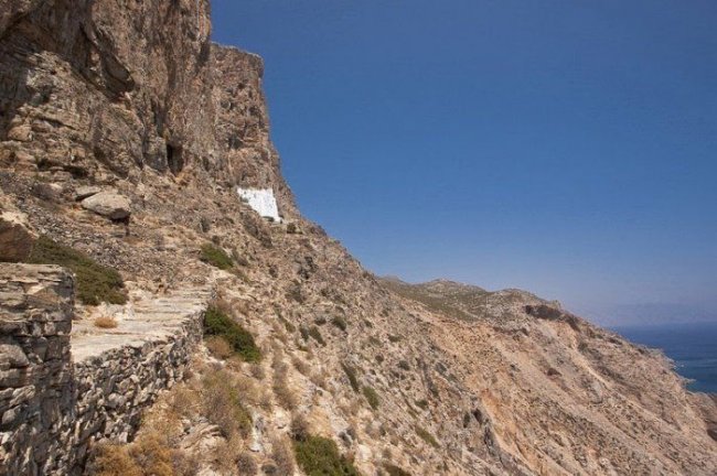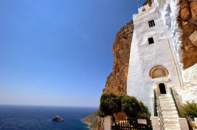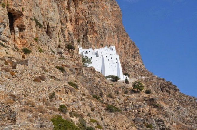 На возвышенности острова Аморгос, расположенного в Эгейском море, находится византийский монастырь Панагия Хозовиотисса на высоте около 300 метров над уровнем моря. Увидеть его можно исключительно с моря.
