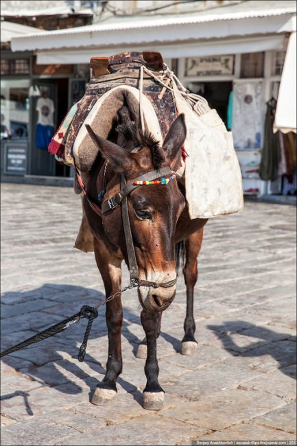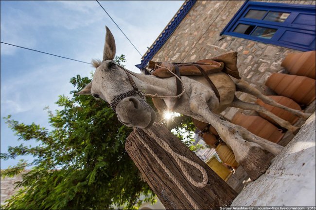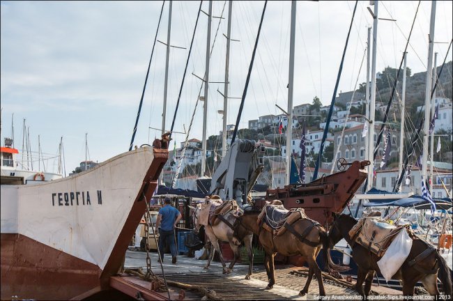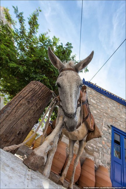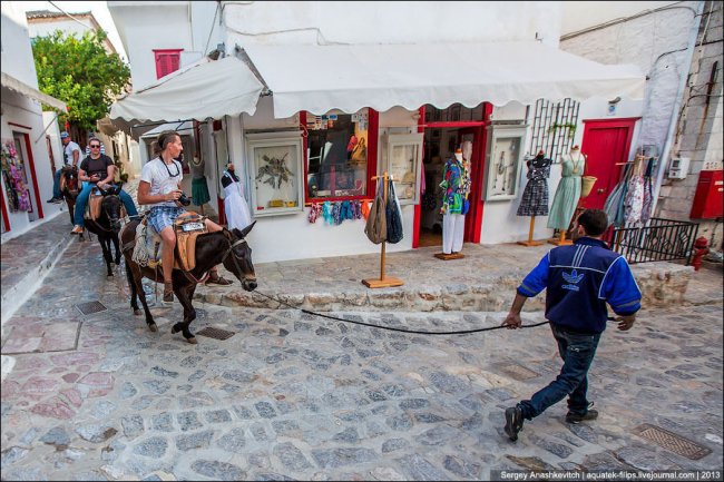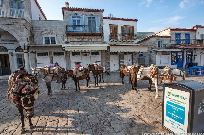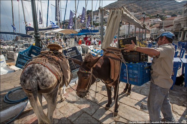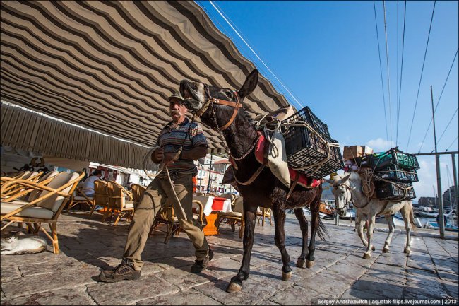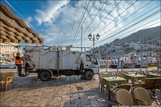 На Идре ни машин, ни мотоциклов, ни мотороллеров, ни даже велосипедов. Правда есть один грузовик, но он вывозит мусор.