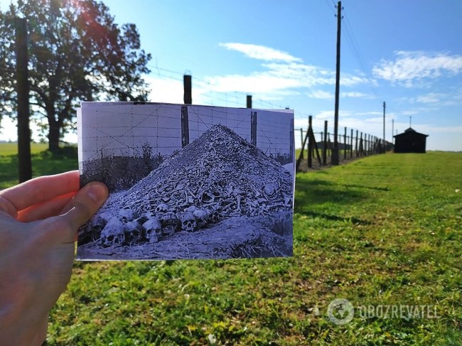 Маршрут, по которому проходят посетители музея "Майданек", закрывает крематорий и, пожалуй, один из самых уникальных памятников жертвам Холокоста. На месте экзекуционных ям V поля, где расстреливали польских партизан и тысячи евреев в ходе операции "Эрнтефест", был сооружен массивный купол-хранилище, под которым до сегодня сохраняется немыслимых размеров гора человеческого праха. Чуть выше - надпись: "Наша судьба - для вас предостережение".