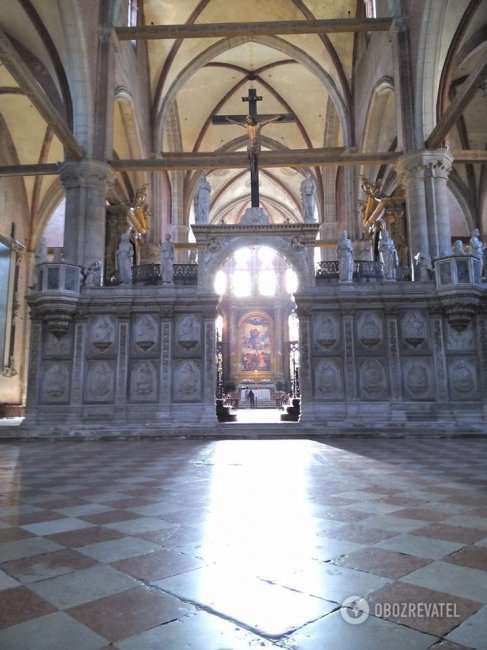 За Гранд-каналом, в глубине западной части архипелага Венеции, находится знаменитая на весь мир работа Тициана – Assunta. Огромная икона возносящейся Богородицы. Здесь же, в церкви Santa Maria Gloriosa dei Frari, или просто – Frari – похоронен и сам Тициан.