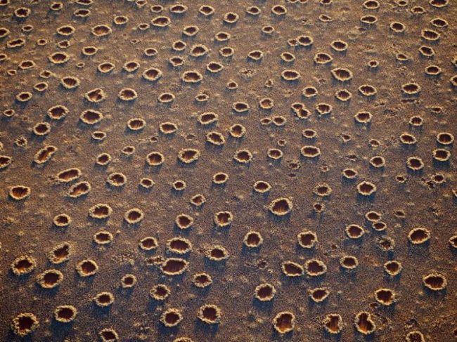 Намибийские «ведьмины круги» представляют собой расположенные примерно на одинаковом расстоянии друг от друга круги голой земли в окружении трав. Встречаются эти образования в засушливых районах страны, и ученые продолжают спорить об их природе.