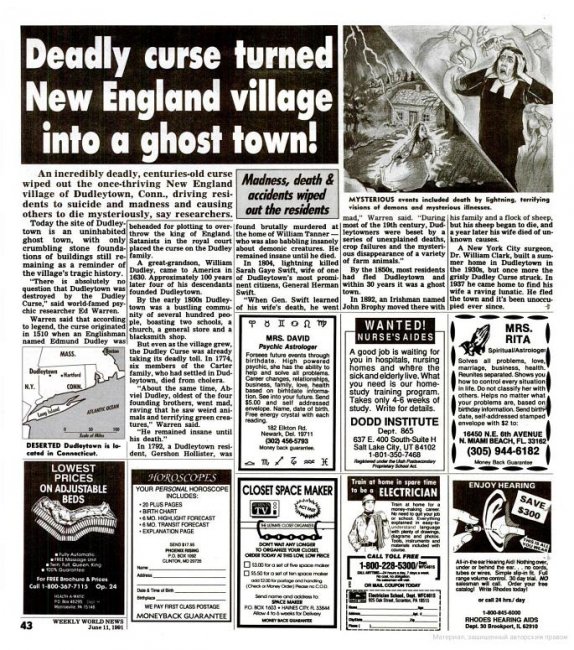 В США, штат Коннектикут, есть такое место — небольшой город Дадлитаун. Люди покинули его более 100 лет назад. Всему виной вереница необъяснимых смертей, несчастных случаев и исчезновений местных жителей.