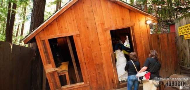 На территории зоны стоит небольшой деревянный домик, построенный Прейзером лет 40 назад. Дом заметно перекошен. При подходе к нему посетители чувствуют усиливающееся со стороны дома давление, так что приходится наклоняться вперед, чтобы удержать равновесие. Компас в зоне ведет себя весьма странно: в метре от земли он точно показывает стороны света, но стоит опустить прибор чуть ниже, как его стрелка поворачивается на 180 градусов.
