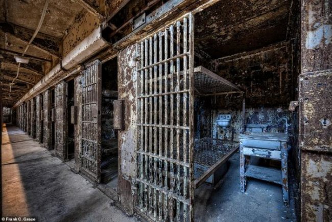 В этой очень строгой тюрьме каждый заключенный содержался в отдельной одиночной камере, а входные двери в камеры были такими низкими, что заключенные сгибались чуть ли не вдвое для входа и выхода. Тюрьма работала с 1829 по 1971 год и самыми знаменитыми ее узниками были гангстер Аль Капоне и грабитель банков Вилли «Уилли» Саттон.