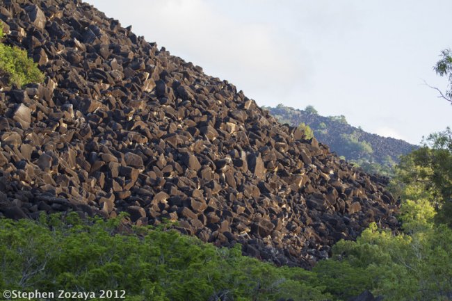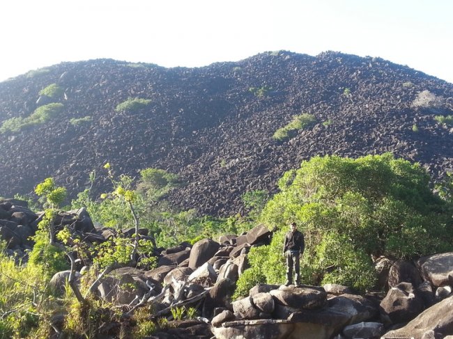 — Мы не ожидали, что гора будет выглядеть настолько странно: она напоминала кучу угля, оставленную гигантским грузовиком посреди зеленого простора деревьев, — продолжает Иван. — Только эта куча была почти 3 км в длину, а то, что казалось кусками угля, на самом деле было огромными черными глыбами, некоторые из которых достигали 6 м в длину.