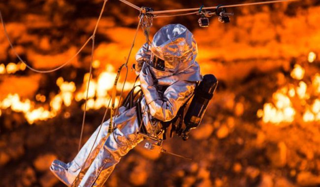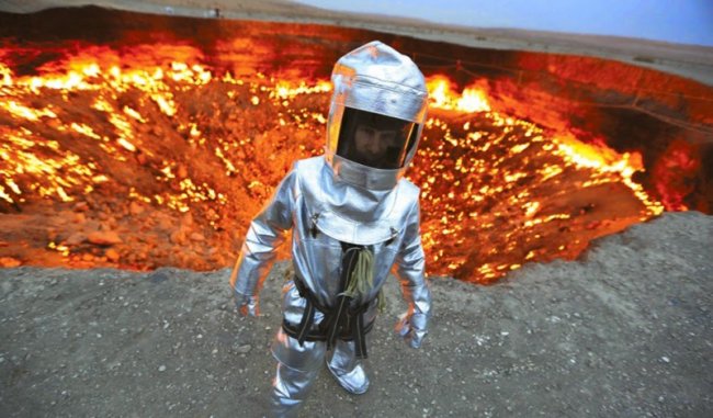 В ноябре 2013 года исследовать одно из самых необычных мест на планете решил известный путешественник Джордж Коронис. Он организовал экспедицию, финансируемую National Geographic. Цель была, ни много ни мало, спуститься на дно раскаленного, горящего кратера и взять пробы грунта. Подготовка к поездке заняла у Корониса целых полтора года, а снаряжение изготавливали из кевлара на военных заводах. Затем отважный путешественник, несмотря на протесты многочисленных родственников, отправился в свое персональное турне по туркменскому аду.