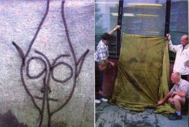 Дмитрий рассказал о происшествии уральским исследователям аномальных явлений. Они осмотрели палатку и убедились, что под влиянием воды на ней проявляется рисунок, напоминающий «лицо» гуманоида.