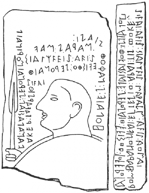 В 1885 г. два молодых учёных французской школы в Афинах, Кузен и Дюррбак, сделали крупное открытие на острове Лемнос в Эгейском море. Неподалеку от деревни Каминия они нашли погребальную стелу с украшениями и надписями. Мы видим на ней изображенное в профиль лицо воина с копьем и два вытесанных текста: один вокруг головы воина, другой на боковой стороне стелы. Этот памятник, творение местного архаического искусства, создан не позже VII века до н. э., то есть гораздо раньше, чем греки завоевали остров (510 г. до н. э.). Надписи выполнены греческими буквами, но их язык – не греческий. Очень быстро было подмечено сходство этого языка с языком этрусков. Здесь и там одни и те же окончания; похоже, словообразование совершается по одинаковым правилам. Таким образом, на острове Лемнос в VII веке до н. э. говорили на языке, похожем на этрусский. И стела – не единичное доказательство. Незадолго до Второй мировой войны исследователи итальянской школы нашли на острове и другие фрагменты надписей на том же языке – очевидно, на языке, которым пользовались обитатели острова до его завоевания Фемистоклом.