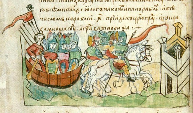 Однако при внимательном анализе всех источников это противоречие разрешается. Поход Руси 941 года был тщательно исследован в работах историка Н. Я. Полового И выяснилось, что русское войско, подойдя 11 июня 941 года на многочисленных ладьях к Босфорскому проливу, разделилось на две неравные части. Небольшой отряд воинов — мы бы его назвали теперь десантом — рванулся вперед, высадился на берег и стал громить предместья Константинополя, между тем как на основную массу русского флота неожиданно напали византийские корабли, обрушив на него «греческий огонь». Это произвело на наблюдавших с берега морской бой «десантников» ошеломляющее впечатление. Видя, как загораются одна за другой русские ладьи, они решили, что флот погиб, борьба бессмысленна, и с наступлением ночи отправились под покровом темноты на своих немногих ладьях в обратный путь — в Киев. Вернувшись домой, они, сообщает летопись, поведали: «Якоже молонья, — рече, — иже на небесех, грьци имуть у собе, и се пущающе же жачаху нас, сего ради не одолехом им», — то есть: «Будто молнию небесную имеют у себя греки и, пуская ее, пожгли нас; оттого и не одолели их».