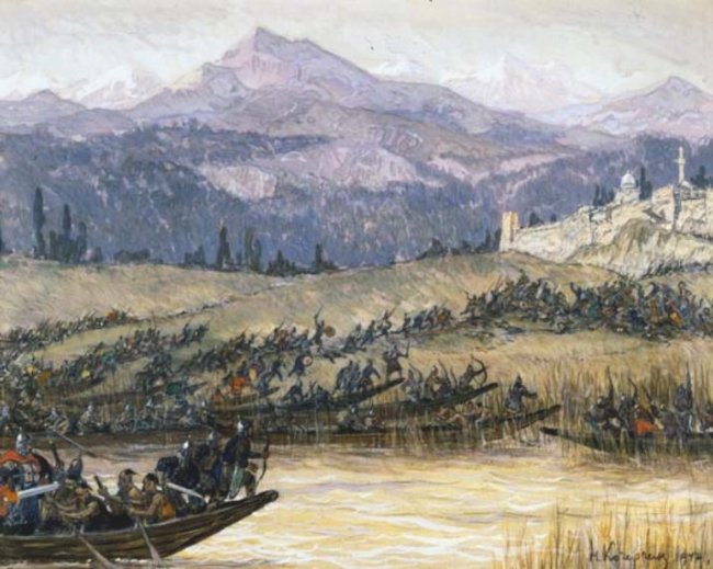 Битва русов с хазарами. «Пришел Хлгу, царю Руси ночью к городу Смкрии (Тмутаракань) и захватил его обманным путем…»