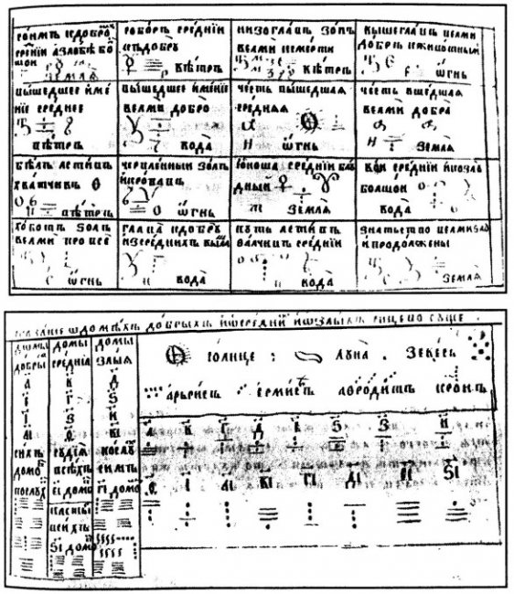 Аналогичным содержанием отличались и рафли, гадательные тетради. Слово «рафли» обозначало обычные графы. Гадательные тетради были особым образом расчерчены, графы – пронумерованы. Содержание рафлей буквально представляло собой список разных примет и гаданий по порядку. Позднее появились не только тетради, но и отдельные листы с подобным содержанием. В XVI веке все они были запрещены, но спустя 3 века опять стали распространяться в виде так называемого гадания Соломона (нарисованный на листе круг с цифрами, по которому гадали ячменными зернами).