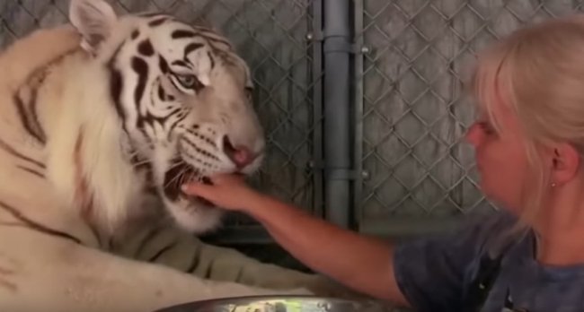 Однажды Дженис Хейли услышала о невероятных курсах обучения общению с тиграми. Идея пришлась по душе, и после программы обучения женщина принесла домой своего первого питомца. Им оказался бенгальский тигренок, которого окружили любовью и заботой. Очаровательный кроха недолго оставался один, и сегодня Дженис воспитывает пару бенгальских тигров: Янда весит 180 кг, а Сабер – 270 кг. Представляете, каково соседям видеть этих милых «котиков», бегающих и резвящихся во дворе Дженис – зрелище точно не для слабонервных.