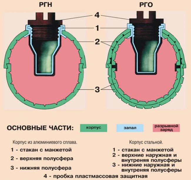 Корпус гранаты представлял собой переработанную, но почти не измененную в целом идею трехсотлетней давности – литой чугунный шар диаметром 80 мм с ребристой насечкой симметричной формы и очком под запал. Заряд гранаты представлял собой смесевое ВВ на основе черного пороха, то есть обладал невысоким фугасным действием, хотя из-за формы и материала корпуса граната давала довольно тяжелые осколки.
