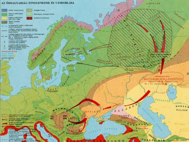 В IV в. н. э. часть угорских племен двинулась к югу Восточной Европы, часть же более западных племен осталась и постепенно растворилась в тюркских племенах. В конце IХ в. н. э. угро-венгры вошли на территорию своей нынешней родины, занятых в основном славянами и остатками аварских племен, где им удалось прочно обосноваться.
