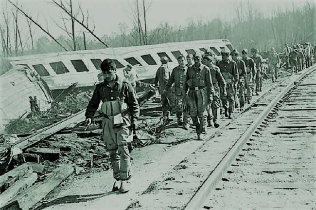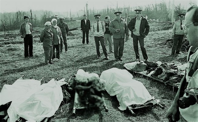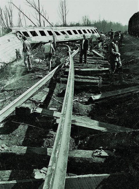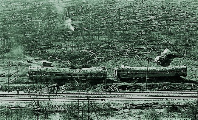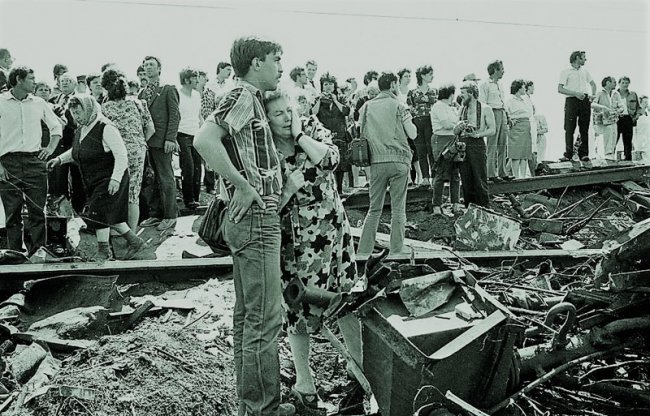 Днем позже, я летал на вертолете над местом катастрофы, и видел громадное черное, словно выжженное напалмом пятно, диаметром более километра, в центре которого лежали искореженные взрывом вагоны.