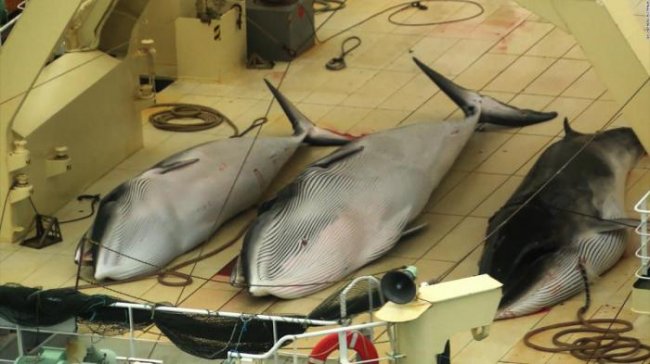 Норвегия – не единственная страна, где беременные самки оказываются жертвами охотников. В прошлом году Япония оказалась под давлением общественности, когда появились фотографии 333 туш полосатиков на одном из китобойных «исследовательских» судов, 230 из которых были самками. Оказалось, что 90% из них были беременными.