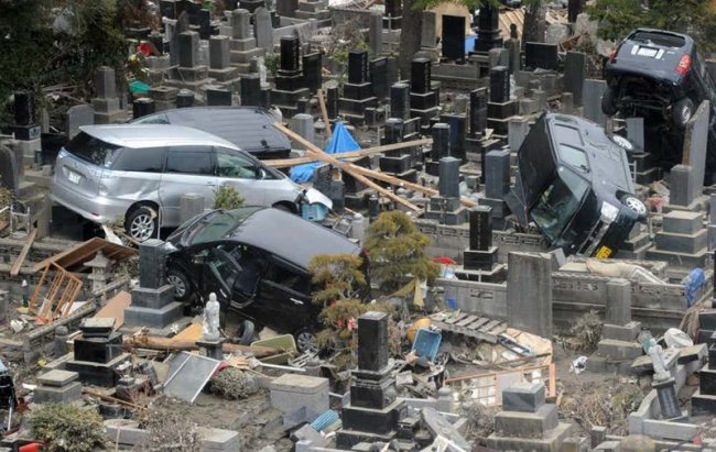 Многих свидетелей потряс угольно-черный цвет морских волн, заливавших города и уносивших в океан машины. Между тем, объясняется этот факт просто и безо всякой мистики: огромная волна подняла со дна столько грязи и глины, что они окрасили воду в антрацитно-черный.