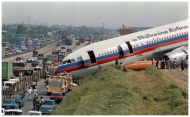 В 1987- PHILIPPINE AIRLINES AIRBUS, точно также проскакивает мимо взлетно-посадочной полосы и выехал на трассу. Никто не пострадал.