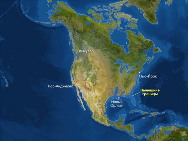 Все Атлантическое побережье США пропадет под водой, включая берега Мексиканского залива, Флориду и большую часть Калифорнии.