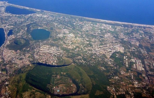 В Италии, неподалеку от Неаполя, находится кальдера Кампи Флегреи – одного из крупнейших и опаснейших супервулканов в мире. Увидеть вулканическое жерло, скрытое под этим, казалось бы, безмятежным пейзажем нельзя. Однако в случае извержения поверхность Земли пойдет трещинами, и вскоре все 13 километров кальдеры обрушаться в резервуар с магмой, которая начнет в свою очередь выливаться на поверхность. Извержение, скорее всего, приведет к образованию нового Везувий-подобного конуса. А при худшем варианте развития событий произойдет уничтожение большой части жизни в Европе.
