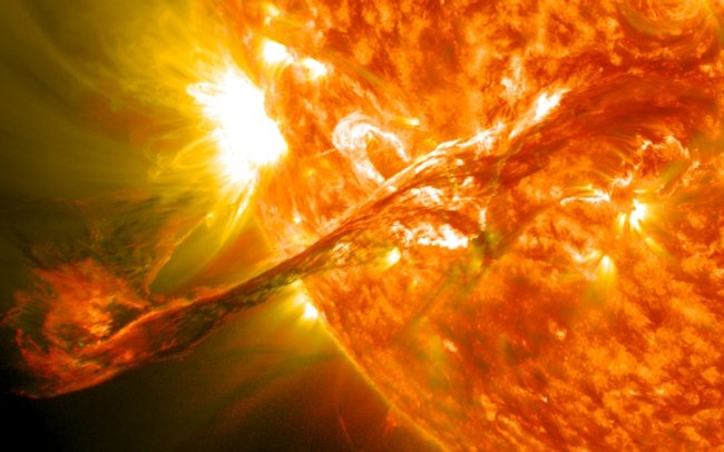Самую большую опасность для современного мира представляет наша собственная звезда. Периодически возникающие вспышки на Солнце рождают облака из фотонов и частиц, чья высвобождаемая энергия сравнима с одновременным взрывом миллионов водородных бомб. Такие облака вторгаются в верхние слои земной атмосферы в течение 1-2 суток. Если солнечный шторм будет достаточно интенсивен, он сможет вывести из строя электрические системы как на орбите, в частности у спутников, так и на Земле, что вызовет отключение глобальных коммуникаций, интернета и системы глобального позиционирования. На планете воцарится хаос.