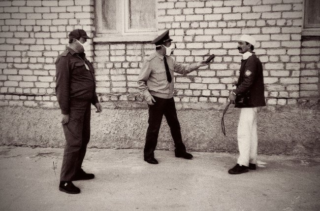 Припять. На улицах появляются первые патрули милиции в респираторах и с дозиметрами. Прохожие смотрят на них с удивлением и опаской. Патрули говорят, что проходят учения.