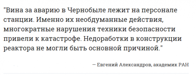 Академик Легасов, первоначально выдвинутый на звание Героя Труда, единственный из руководителей ликвидации не получает ни одной государственной награды. Официальное объяснение: сотрудники Курчатовского института косвенно виновны в аварии.