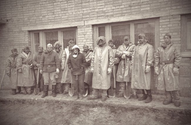 Рабочие железнодорожной станции АЭС с изумлением смотрят на разноцветный столб. Крановщица замерла в кабине на высоте 20 метров. Она первой из сотрудников получает максимальную дозу радиации и через сутки умрёт в больнице.