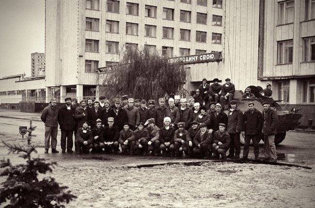 Киев. На городском вокзале ажиотаж создан толпами желающих покинуть город. Билеты исчезают из касс, а цена у перекупщиков вырастает в 20 раз до 250 рублей (при средней зарплате по стране в 120). В аэропорту Борисполь после приостановки вылетов толпа прорывает милицейское оцепление и бежит по взлётной полосе к самолётам. Вылеты возобновляются.