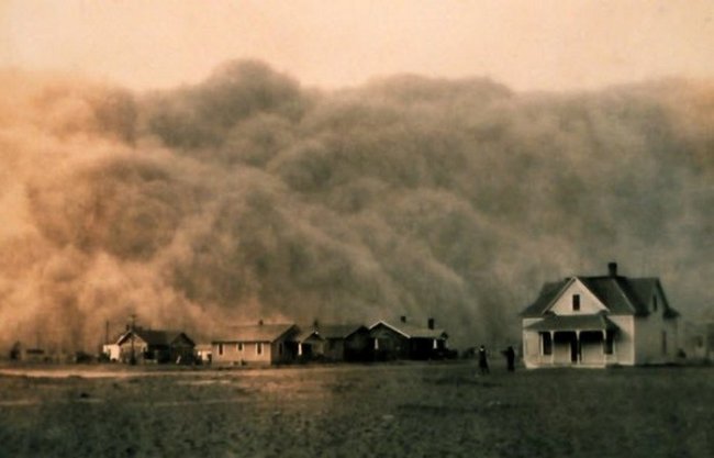 14 апреля 1935 года пыльные бури были настолько огромными, что они полностью затмили Солнце в нескольких штатах (а также в Вашингтоне). Экипажи кораблей в Атлантическом океане регулярно сообщали, что пыль падает на их палубы. Принятые в 1939 году новые законы и программы о сохранении почвы, а также наконец-то начавшийся дождь заставили людей поверить в то, что «конец света отменяется».