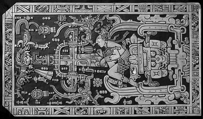 На барельефе племен Майя, которому полторы тысячи лет, древний индеец управляет космическим кораблем. Дыхательный аппарат и ядерный реактор в наличии.