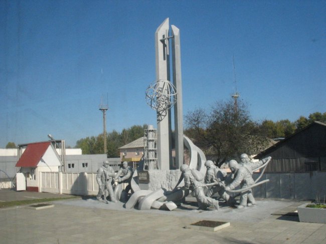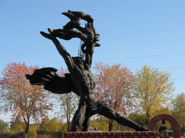 Раньше эта статуя стояла в г.Припять, но, чтоб сохранить, её перевезли под станцию возле мемориала.