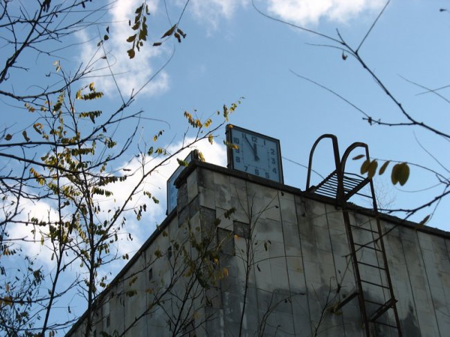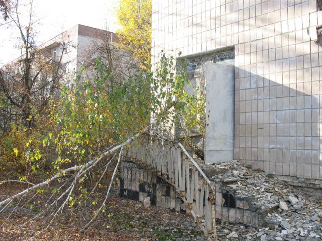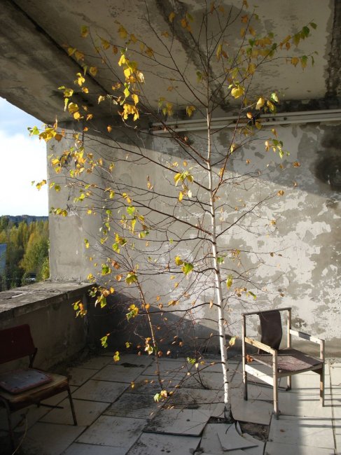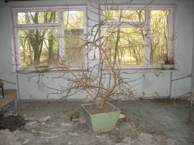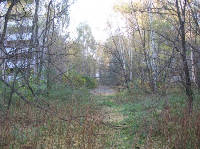 Очень извиняюсь за качество фото, но не мог не выложить. Объясняю: на первых видеозаписях с Припяти, после аварии, есть кадр с этим ящиком и за ним пустота, т.е. растительности ноль! На тот момент прошло 20+ лет, а результат на фото…природа живуча!