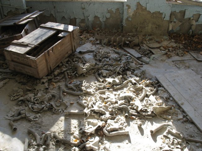 В одно время пугали этими противогазами)) Каких только историй не придумывали)) На самом деле всё просто — данная модель содержала в своих элементах ценные металлы (если не ошибаюсь платину) и, естественно, подверглась изъятию ублю…мародёрами. Ну не будут же они складывать их потом на место и возвращать на место коробки)) Вот так и лежат на полу…