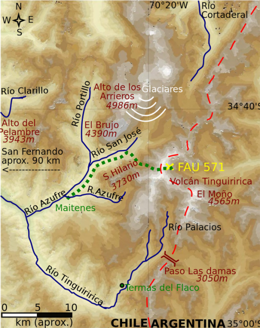 Кроме регбийной команды, на борту находилось пять членов экипажа: два пилота, бортинженер, бортмеханик и бортпроводник — все военные летчики. На следующий день после некоторого улучшения погоды Fairchild продолжил рейс. Практический потолок для данного типа самолета составлял 9000 метров, что вынуждало экипаж пересекать Анды через горные перевалы и долины. При этом полет проходил в условиях сплошной облачности. Лишенные возможности наблюдать происходящее за бортом собственными глазами, пилоты ориентировались лишь по приборам. Когда, по их расчетам, форсирование горной гряды закончилось, они запросили разрешение на снижение. Диспетчер аэропорта Сантьяго такое разрешение им дал, вот только на самом деле под рейсом №571 по-прежнему были Анды.