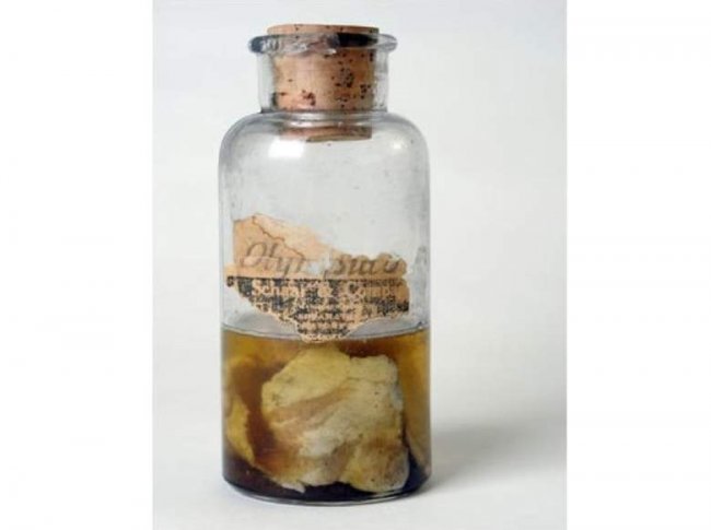 К счастью, кому-то из местных жителей пришла в голову идея собрать его образцы до того, как мясо начало тухнуть на жаре и эти образцы до сих пор хранятся в небольшой банке (см.фото ниже).