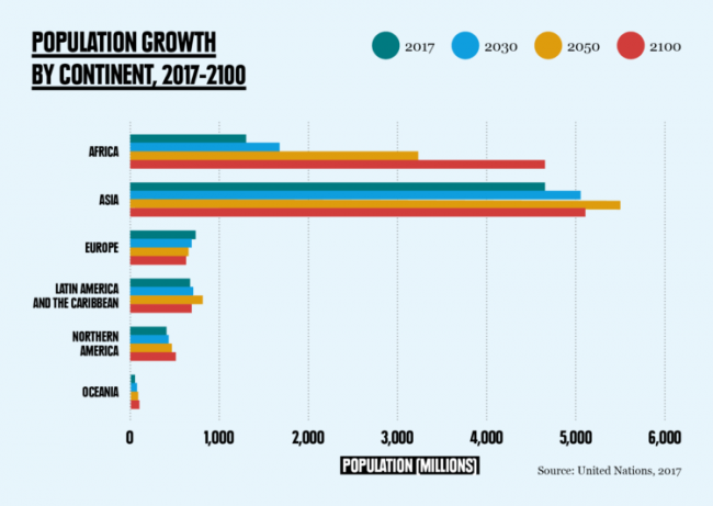 Рост мировой численности населения (текущий и прогнозируемый) в миллионах человек