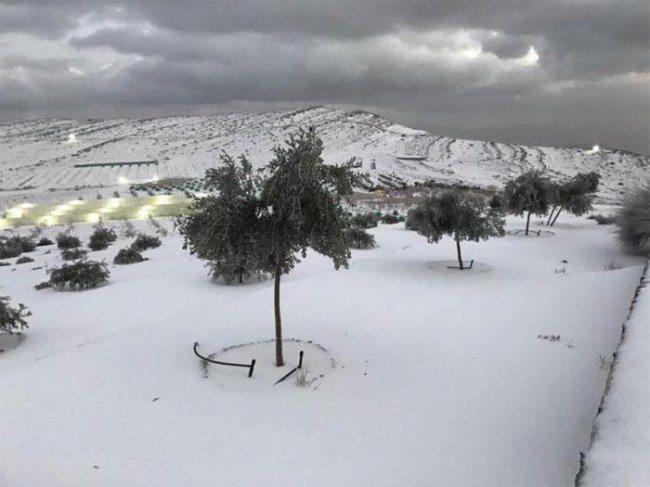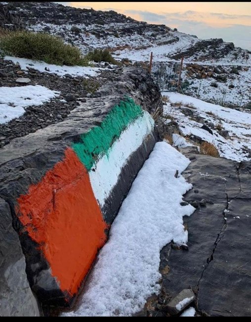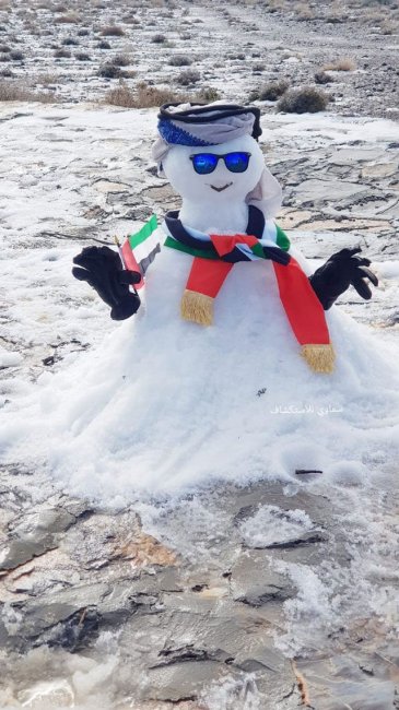На вершине Джебель-Джаис в горах Хаджар в Объединённых Арабских Эмиратах пошёл снег! Температура упала до –1 °C.