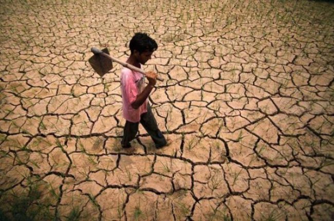 Засуха на рисовом поле в Индии, вызванная прошлым Эль-Ниньо.