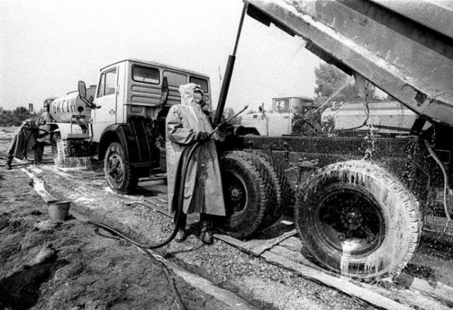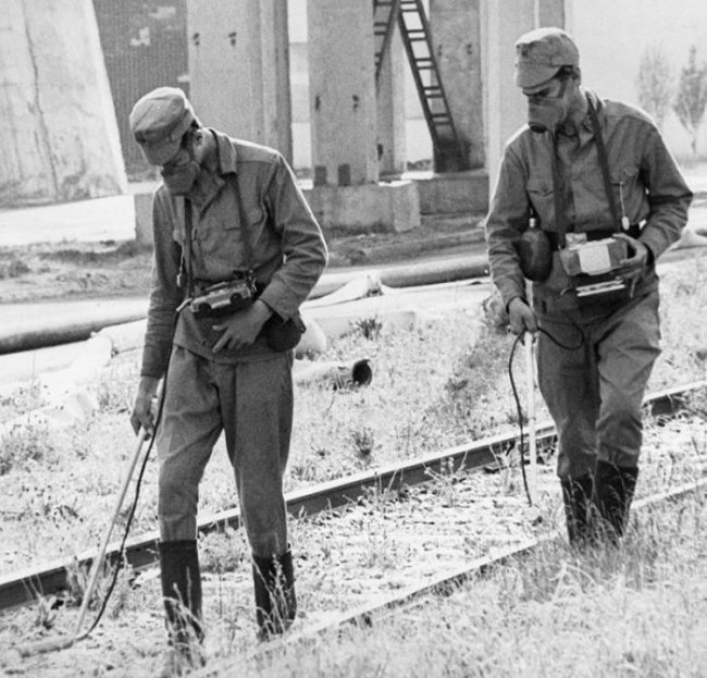 Рабочая вахта ликвидатора на крыше Третьего блока длилась всего две минуты – их отсчитывал специальный человек-дозиметрист, после чего бил в рельс – это был сигнал, что пора бежать в укрытие. За две минуты люди успевали получить чудовищную дозу в несколько десятков бэр.
