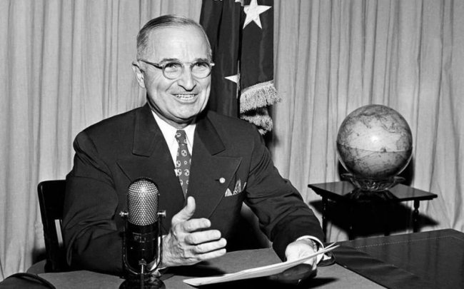 После смерти 12 апреля 1945 года президента Франклина Рузвельта лидером страны стал Гарри Трумэн. Новый президент был сторонником жёсткой линии в отношениях с Советским Союзом и рассматривал новое оружие как «дубину против Сталина».