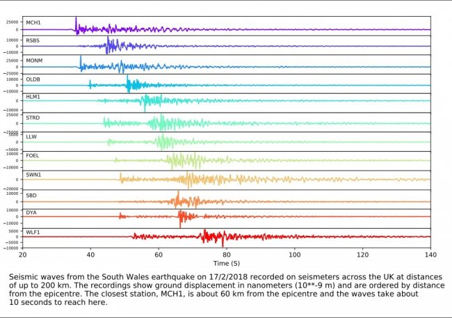 Таким образом, с магнитудой землетрясения в Уэльсе официальные сейсмологи либо в наглую врут, либо что-то путают. Что в общем-то не удивительно. Вот какую интересную сейсмограмму нарисовали для прессы в British Geological Survey: