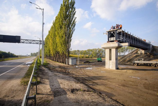 На фотографиях, которые опубликовал топ-менеджер Укрзализныци, видно, что уже возведены опоры эстакады, и строители начали монтаж пролетных строений.