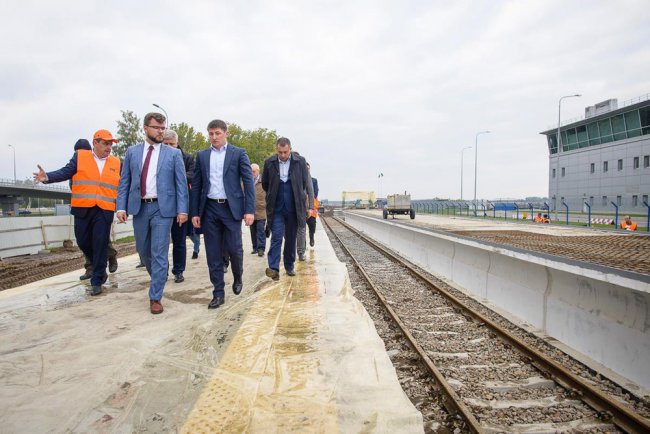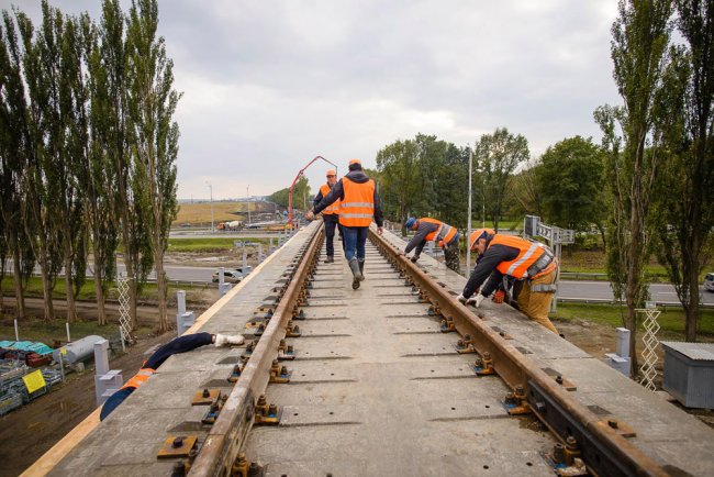 По словам Кравцова, железнодорожники уже уложили все 1,4 км полотна от железнодорожной магистрали к эстакаде.