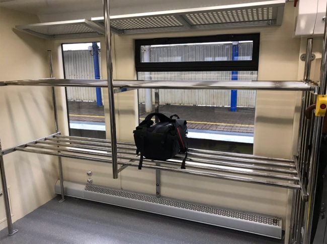 На них видно, что кресла расположены по схеме 2+3 друг напротив друга. В салоне есть мониторы, место для хранения крупногабаритного багажа и площадка для перевозки пассажиров в инвалидных колясках.