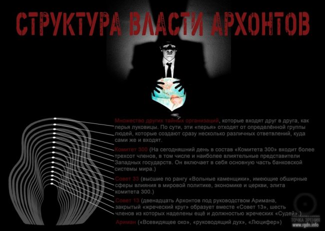 Ариман всего лишь играет на слабостях людей. И одной из таких слабостей является подсознательное тяготение людей к тайнам. И здесь затрагиваются не только духовный порыв человека, его желание вырваться из цепи реинкарнаций с помощью тайных знаний, но чаще всего — это банальные эгоистичные амбиции обладать данными знаниями ради власти над себе подобными. Потому-то подавляющее большинство тайных обществ и процветает под Архонтами. А учитывая то, что люди не просто хотят овладеть тайными знаниями, а ещё создать вокруг себя свою «империю», мы имеем то, что на сегодняшний день практически всем миром управляет тайное мировое правительство — Архонты.