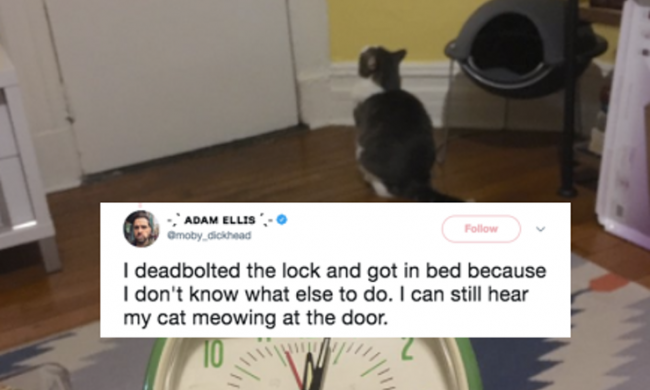 Последние четыре ночи кошки Адама собираются у входной двери ровно в полночь и просто смотрят на нее.